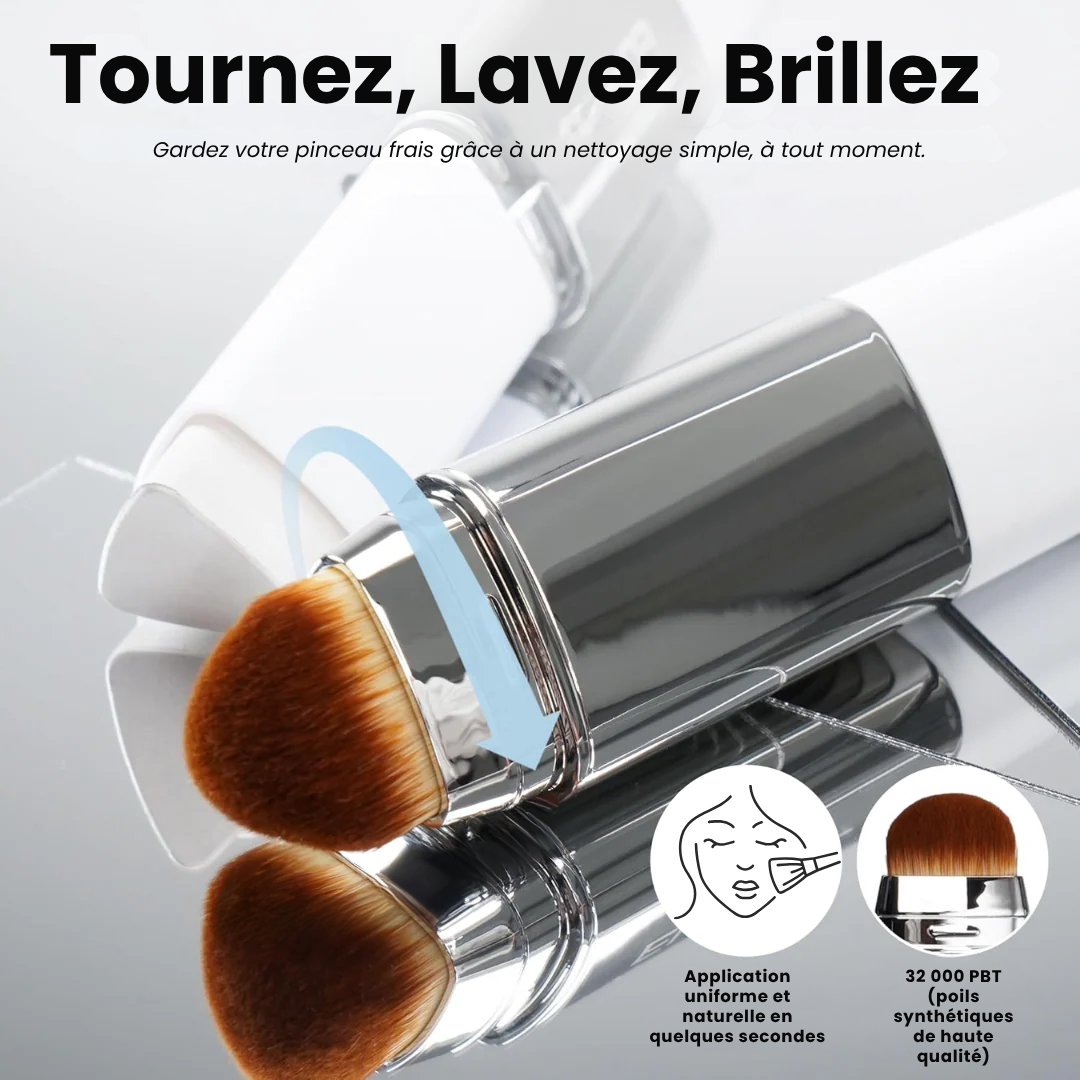 ✔ Pinceau intégré premium Un embout biseauté ultra-doux pour estomper, sculpter ou retoucher le maquillage où que vous soyez.